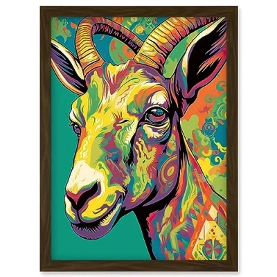 Artery8 The Trippy Goat Psychedelic Portrait Vibrant Colourful Patterns Modern Pop Art Artwork Framed Wall Print A4