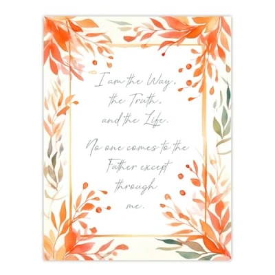 Artery8 The Way Truth Life Orange Bible Quote New Testament Jesus Christ Christian Faith God Revelations Flowers Artwork Extra Large XL Wall Art Poster Print