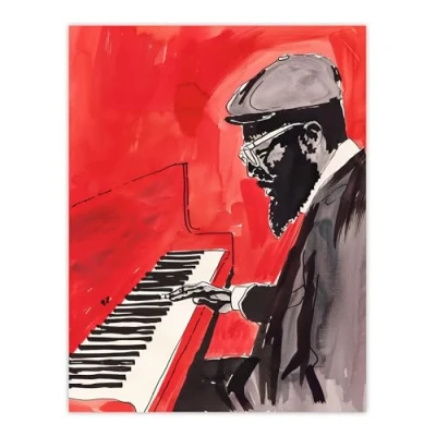 Artery8 Thelonious Monk Jazz Piano Music Red Portrait Living Room Extra Large XL Wall Art Poster Print