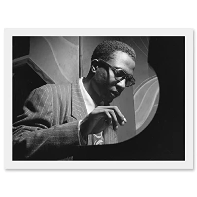 Artery8 Thelonious Monk Playing Black & White Jazz Legend A4 Artwork Framed Wall Art Print