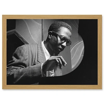 Artery8 Thelonious Monk Playing Black & White Jazz Legend A4 Artwork Framed Wall Art Print