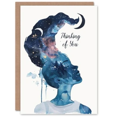 Artery8 Thinking Of You Night Astral Dream Watercolour For Her Woman Miss Card