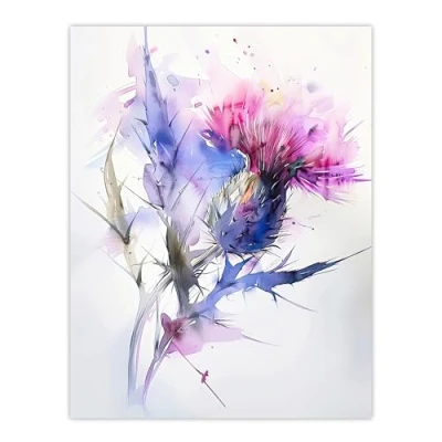 Artery8 Thistle Flower Violet Pink Green Soft Watercolour Living Room Large Wall Art Poster Print Thick Paper 18X24 Inch