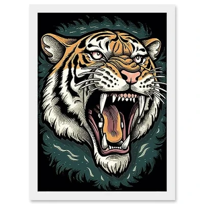 Artery8 Tiger Head Old School USA Tattoo Ink Body Art Rockabilly Americana 50s Artwork Framed A3 Wall Print