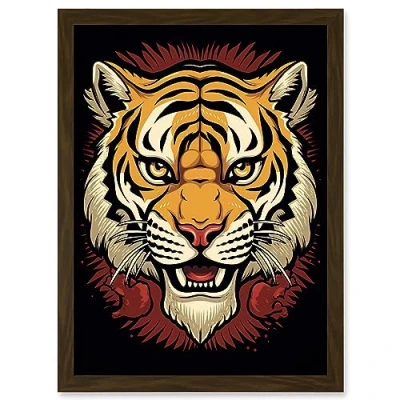 Artery8 Tiger Head Old School USA Tattoo Ink Body Art Rockabilly Americana 50s Artwork Framed A3 Wall Print