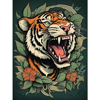 Artery8 Tiger Roaring Old School USA Tattoo Ink Body Art Rockabilly Americana 50s Large Wall Poster Print Thick Paper 18X24 Inch