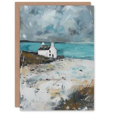 Artery8 Timeless Scottish Cottage on Loch Oil Painting Greeting Birthday Card Him Her All Blank