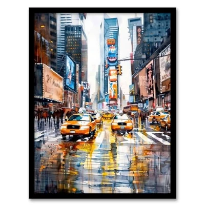Artery8 Times Square Taxis Billboards Watercolour Iconic Living Room Artwork Framed Wall Art Print A4