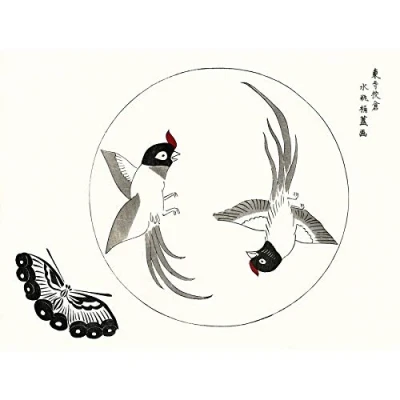 Artery8 Tomoki Rawpixel Birds Butterfly Japanese Woodblock Illustration Large Wall Art Poster Print Thick Paper 18X24 Inch