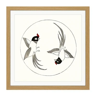 Artery8 Tomoki Rawpixel Birds Butterfly Japanese Woodblock Illustration Square Wooden Framed Wall Art Print Picture 16X16 Inch