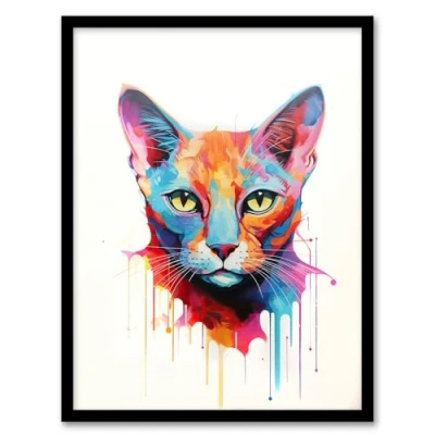 Artery8 Tonkinese Cat Lover Gift Pet Portrait Pastel Colour Blue Orange Purple Artwork Painting Framed Wall Art Print A4