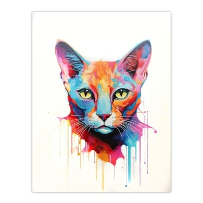 Artery8 Tonkinese Cat Lover Gift Pet Portrait Pastel Colour Blue Orange Purple Artwork Painting Large Wall Art Poster Print Thick Paper 18X24 Inch