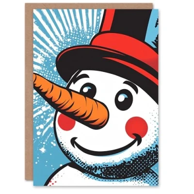 Artery8 Top Hat Snowman Face Comic Book Pop Art Blank For Him Or Her Xmas Festive Christmas Card