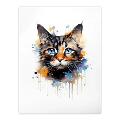 Artery8 Tortoiseshell Cat Lovers Gift Watercolour Pet Portrait Painting Artwork Extra Large XL Wall Art Poster Print