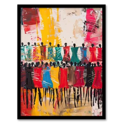 Artery8 Traditional African Choir Colourful Oil Painting Living Room Artwork Framed Wall Art Print A4