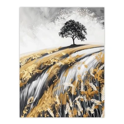 Artery8 Tree in Golden Field of Wheat Painting Landscape Living Room Large Wall Art Poster Print Thick Paper 18X24 Inch
