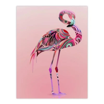 Artery8 Tribal Flamingo Artwork Pink Animal Bird Lover Living Room Large Wall Art Poster Print Thick Paper 18X24 Inch