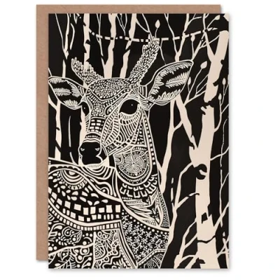 Artery8 Tribal Pattern Deer Black White Forest Landscape Greeting Birthday Card Him Her All Blank