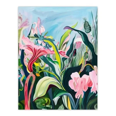 Artery8 Trippy Exotic Wildflower Garden Painting Tropical Living Room Large Wall Art Poster Print Thick Paper 18X24 Inch