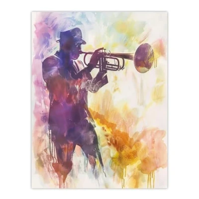 Artery8 Trombonist Playing Jazz Music Watercolour Musical Living Room Large Wall Art Poster Print Thick Paper 18X24 Inch