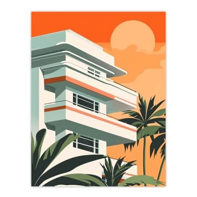 Artery8 Tropical Apartment at Sunset Palm Trees Modern Living Room Large Wall Art Poster Print Thick Paper 18X24 Inch