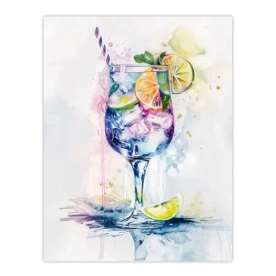 Artery8 Tropical Cocktail Drink Colourful Watercolour Kitchen Large Wall Art Poster Print Thick Paper 18X24 Inch