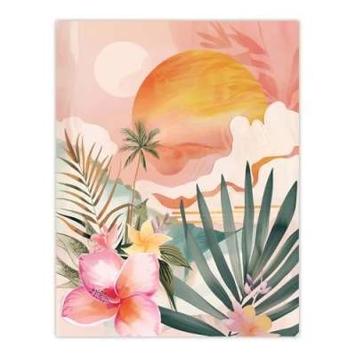 Artery8 Tropical Pink Beach Sunset Palm Orchids Abstract Living Room Large Wall Art Poster Print Thick Paper 18X24 Inch