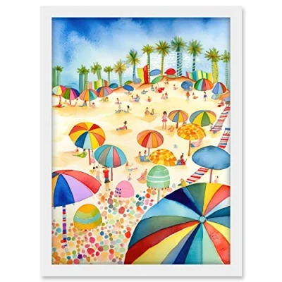 Artery8 Tropical Summer Beach Folk Art Artwork Framed A3 Wall Print