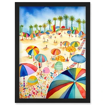 Artery8 Tropical Summer Beach Folk Art Artwork Framed Wall Print A4