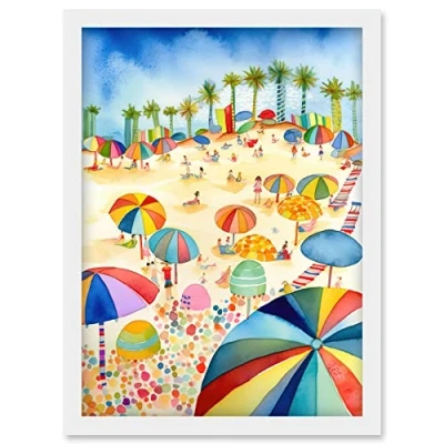 Artery8 Tropical Summer Beach Folk Art Artwork Framed Wall Print A4