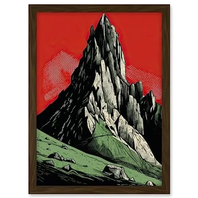Artery8 Tryfan Mountain Peak Bold Linocut Illustration Artwork Framed A3 Wall Art Print
