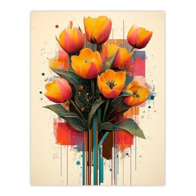 Artery8 Tulip Bouquet Modern Floral Abstract Painting Living Room Large Wall Art Poster Print Thick Paper 18X24 Inch