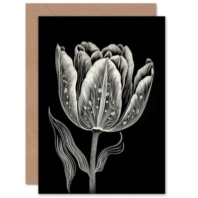 Artery8 Tulip Flower Folk Art for Wife Her Mum Sister Daughter Mom Gran Nan Birthday Thank You Congratulations Blank Greeting Card