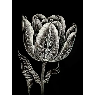 Artery8 Tulip Flower White on Black Blind Contour Folk Art Extra Large XL Wall Poster Print