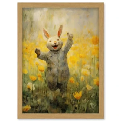 Artery8 Tulips and Rabbit Watercolour Fun Kids Baby Nursery Artwork Framed Wall Art Print A4