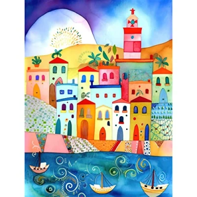 Artery8 Tunisia Seaside Town Folk Art Extra Large XL Wall Poster Print