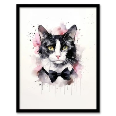 Artery8 Tuxedo Cat Lovers Gift Watercolour Pet Portrait Painting Artwork Framed Wall Art Print A4