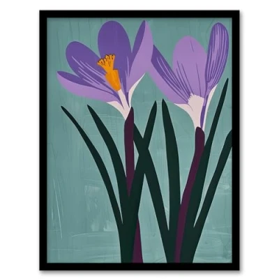 Artery8 Two Purple Crocus Flowers Painting Simple Floral Living Room Artwork Framed Wall Art Print A4