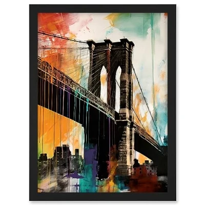 Artery8 Under the Brooklyn Bridge Multicoloured Cityscape Artwork Framed A3 Wall Art Print