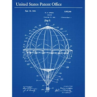 Artery8 Upson Air Balloon 1925 Vintage Close Up Patent Premium Wall Art Canvas Print 18X24 Inch