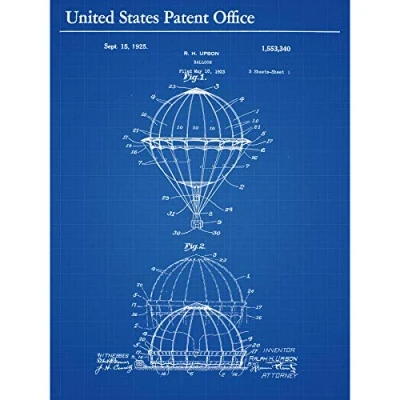 Artery8 Upson Air Balloon 1925 Vintage Patent Plan Premium Wall Art Canvas Print 18X24 Inch