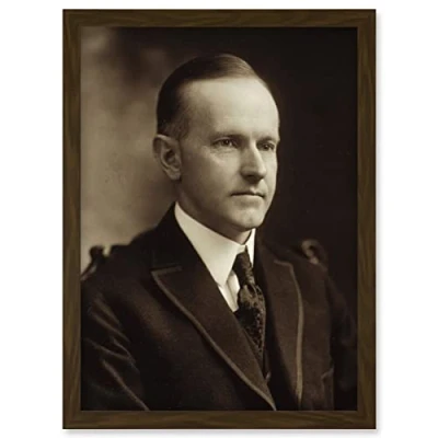Artery8 US President Calvin Coolidge Portrait Photo Artwork Framed Wall Art Print A4