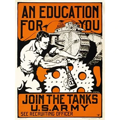 Artery8 USA Army Tank Recruitment Advert 1919 Education Unframed Wall Art Print Poster Home Decor Premium