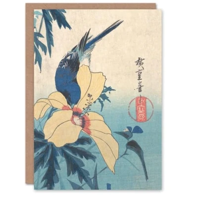 Artery8 Utagawa Hiroshige Art Card Hibiscus And Bluebird