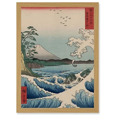 Artery8 Utagawa Hiroshige Japanese Sea Off Satta Iconic A4 Artwork Framed Wall Art Print