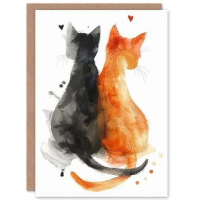 Artery8 Valentine's Day Card Black Cat Orange Tabby Lover Sweet Love Blank Arty Art All Occasion Greeting
