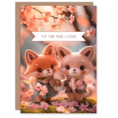 Artery8 Valentine's Day Card Cute Felt Fox Couple Flower Picking One I Love For Her Wife Woman Partner Girlfriend Greeting