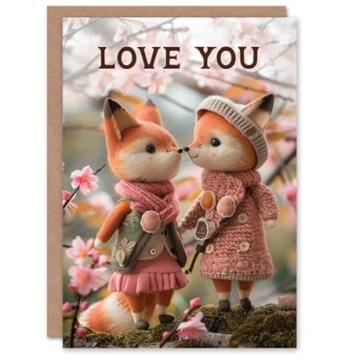 Artery8 Valentine's Day Card Cute Felt Foxes Floral Forest Walk Love You For Her Wife Woman Partner Girlfriend Greeting