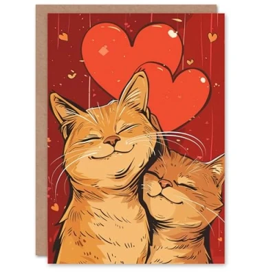 Artery8 Valentine's Day Card Cute Ginger Tabby Couple Love Heart Cat Lover Blank Arty Art All Occasion Greeting