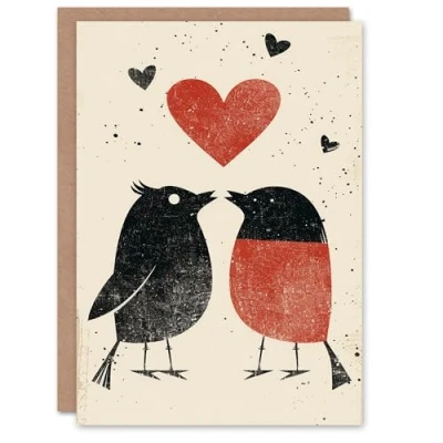 Artery8 Valentine's Day Card Simple Red Robin Birds Couple Love Heart For Him or Her Partner Greeting Personalised